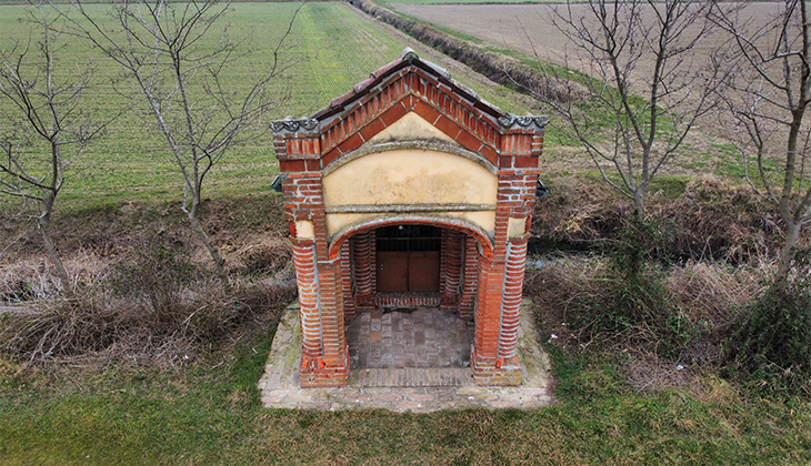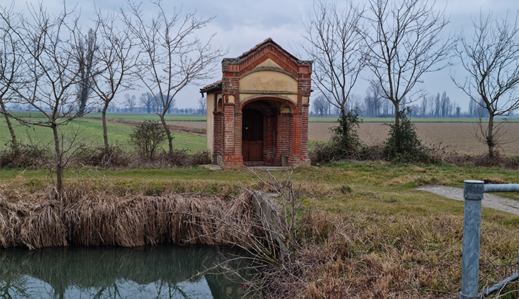 Il Madonnino dei Buoi è un piccolo ma significativo simbolo di devozione popolare e tradizione contadina che si trova nel cuore delle campagne del lodigiano. Edicola votiva, modesta e affascinante, è una dei tanti segni di fede che punteggiano il paesaggio agricolo di questa zona, testimoniando il legame profondo tra la vita rurale e la spiritualità della gente di campagna. Il Madonnino è dedicato alla Vergine Maria e si caratterizza per la sua semplicità. La statua della Madonna, solitamente posta all'interno di una piccola nicchia, è un luogo di preghiera e riflessione per i contadini che passano quotidianamente da questi luoghi, segnando una tradizione che affonda le radici nel passato e che continua a essere parte integrante della cultura locale. Il termine "Madunin dí bò" (in dialetto lodigiano) si traduce letteralmente in "Madonnina dei buoi", un richiamo diretto alla figura del bue, che è stato, per secoli, l'animale da lavoro per eccellenza nelle campagne. La presenza di una statua della Madonna nei pressi dei campi simboleggiava la protezione divina per i lavoratori della terra e per il loro faticoso lavoro agricolo. Il Madonnino, quindi, non era solo un punto di riferimento spirituale, ma anche un segno di speranza e di invocazione di benedizioni per il raccolto e per la protezione del bestiame.